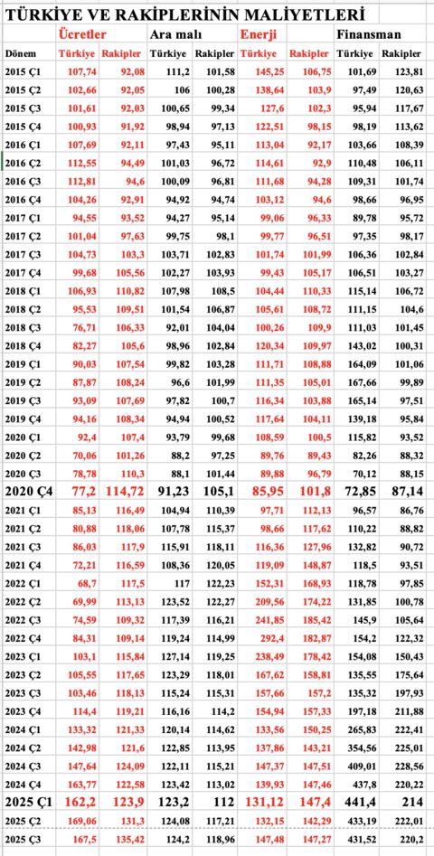 ➔Verilere baktığımızda Türkiye'nin maliyet yapısı ile rakip ülkeler (Gelişmekte olan ekonomiler) arasında keskin bir ayrışma görüyoruz.