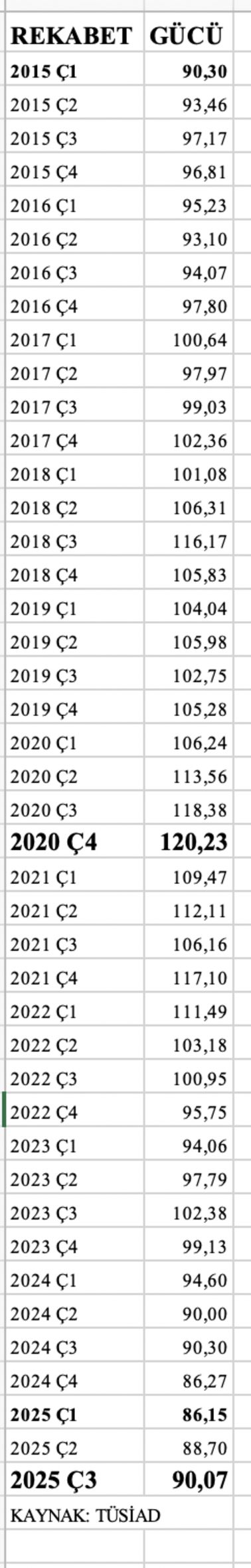 ➔Ancak ne zaman ki enflasyon çift haneli canavara dönüştü, o kazandığımız %33’lük mevziyi 4 yıl süren sancılı bir gerilemeyle geri verdik. Bu yılın ilk çeyreğinde endeksin 86.15’e kadar gerilemesi, aslında bir "rekabet krizi" ilanıydı.