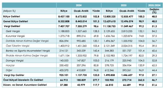 Vergi gelirleri 2025’te yüzde 51.3 artışla yıl sonu enflasyonuna 20 puan fark attı.