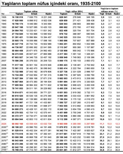 Ancak zaman, suyun akışı gibi durdurulamaz bir güçle ilerledi. 2000 yılında %5,7 olan yaşlı nüfus oranı, 2024 itibarıyla %10,6’ya, 2025’te ise %11,1’e ulaştı. Bu, sadece bir istatistik değil; 1935’te yarım milyon olan yaşlı sayısının, bugün 9 milyon 583 bin kişiye ulaşması demek. Yani bir asırda yaşlı nüfusumuz yaklaşık 15 kat arttı.
