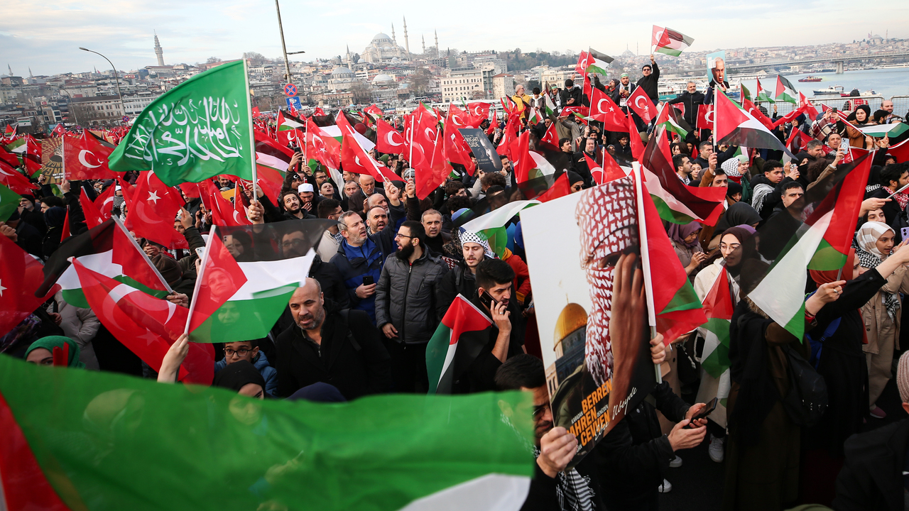 Malûm, yeni yılın ilk gününde İstanbul’da “Şehitlerimize Rahmet, Filistin’e Destek, İsrail’e Lânet” diye bir yürüyüş düzenlendi, yürüyenlerden bazıları “Hilâfet” sloganları attılar, Hilâfet’e ait olduğu iddia edilen bayraklar açıldı, bayrağı taşıyanlardan biri yumruklandı, bir başkası da yumruk atana yumruk attı, gözaltılar yapıldı ve nihayet nurtopu gibi bir gündemimiz oldu: Hilâfet bayrağı...