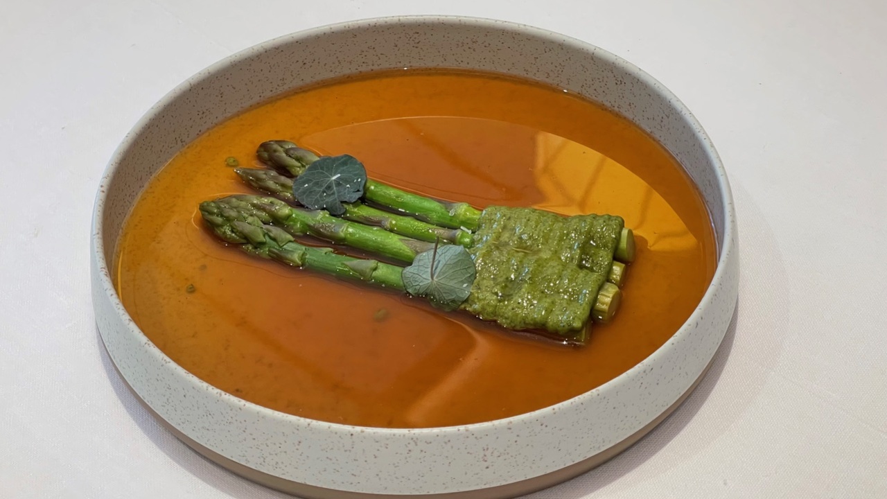 “Apicius’un tekniğiyle” pişen kuşkonmazı denememizi masamıza bakan görevli özelikle tavsiye etti, hikayesini de ancak sipariş edersek servisi yaparken anlatacağını söyledi. Beşinci Yüzyıl’dan kalma olduğu tahmin edilen ve Roma İmparatorluğu’nda yenene yemeklerin ilk yazılı kaydı olarak bilinen Apicius kitabı özelikle eski dünyanın ve Akdeniz bölgesinin nasıl beslendiğini anlamamıza yardımcı oluyor. Romalılar o yıllarda umamiyi keşfetmiş miydi? Zira Telezzüz dengeyi bir parça kaçırmış. Ama kuşkonmaz dokusu itibariyle kusursuzdu; ne yumuşak ne sert, tam olması gerektiği gibi. Ama insanın aklını başından almıyor.