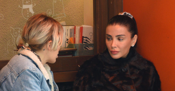 Özge Ulusoy, Nişantaşı'ndaki bir mekânda arkadaşıyla hararetli bir şekilde sohbet ederken görüntülendi