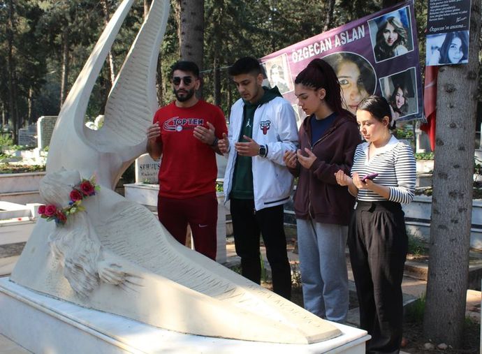 Tarsus'ta 2015 yılında dersten çıktıktan sonra evine gitmek için bindiği minibüsün şoförü Ahmet Suphi Altındöken tarafından öldürülen Özgecan Aslan'ı anmak için annesi Songül, babası Mehmet Aslan ve yakınları, Mersin Şehir Mezarlığı'ndaki kabrinin başına geldi.
