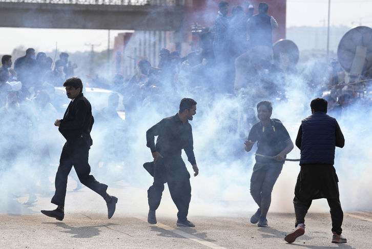 Polis, Pakistan Adalet Hareketi Partisi (PTI) taraftarlarına biber gazı ve copla müdahale etti, PTI destekçileri de polise taş ve sopa fırlattı.