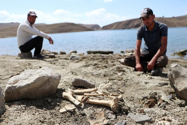 Şimdi sular yaklaşık 20 metre civarında çekildi. Köyümüze ait mezarlar da ortaya çıktı. Mezarlığa gelip baktığımızda kıyıda kemikler olduğunu gördük" dedi.