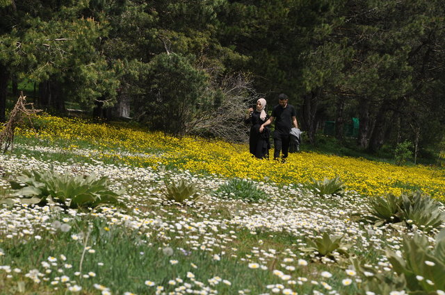 Bolu'da Abant Tabiat Parkı ile çevresindeki yaylalarda rengarenk açan papatya ve düğün çiçekleri, doğaseverlere eşsiz güzellikler sunuyor