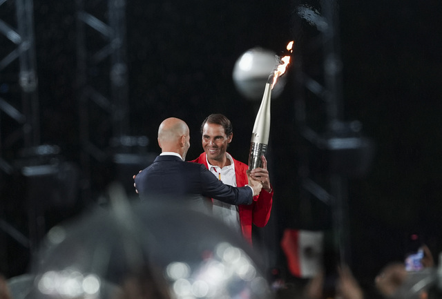 Meşaleyi eski Fransız futbolcu Zinedine Zidane, İspanyol tenisçi Rafael Nadal, eski ABD'li atlet Carl Lewis, eski Fransız basketbolcu Tony Parker, eski Rumen cimnastikçi Nadia Comaneci, hentbolcu Nikola Karabatic, eski Fransa Ulusal Meclisi Üyesi Jean-François Lamour, Fransız yüzücü Florent Manaudou, Fransız judocu Teddy Riner, eski Fransız atlet Marie-Jose Perec, eski ABD'li tenisçi Serena Williams, eski Fransız tenisçi Amelie Mauresmo gibi isimler elden ele taşıyarak 1948 Londra Yaz Olimpiyatları'nda altın madalya kazanan 100 yaşındaki Fransız bisikletçi Charles Coste'ye teslim etti.