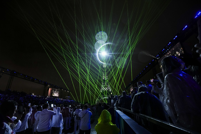 Olimpiyat oyunları tarihinde ilk kez müsabakaların yapılacağı stadyumun dışında düzenlenen açılış törenine katılanlar Sen Nehri iskelelerinden gösterileri takip etti.