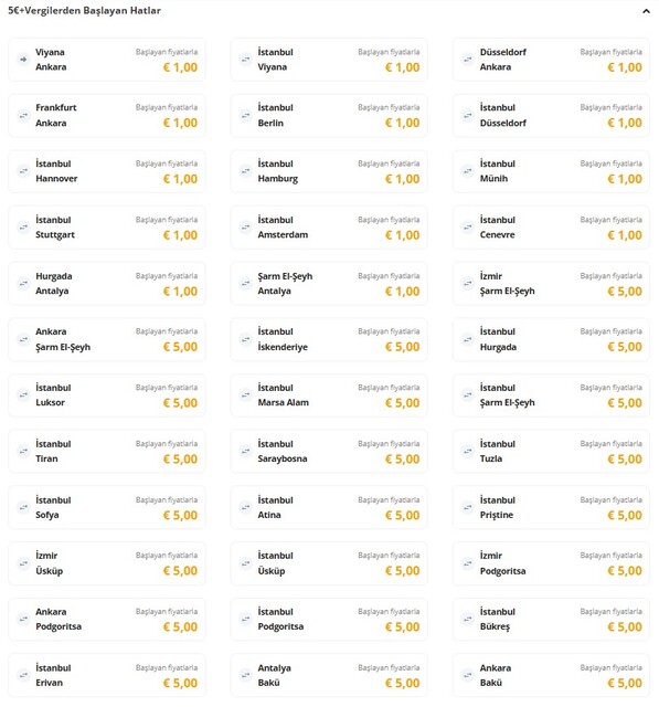 PEGASUS YURT DIŞI İNDİRİMLİ ROTALARIN TAM LİSTESİ
