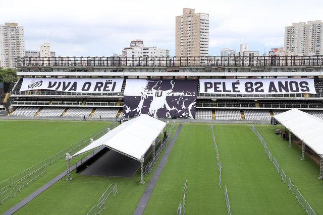 Brezilyalı efsane futbolcu Pele'nin cenaze töreni, kariyerinin büyük bölümünün geçtiği Santos Stadyumu'nda düzenleniyor