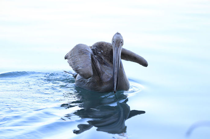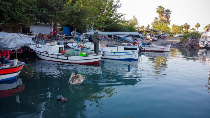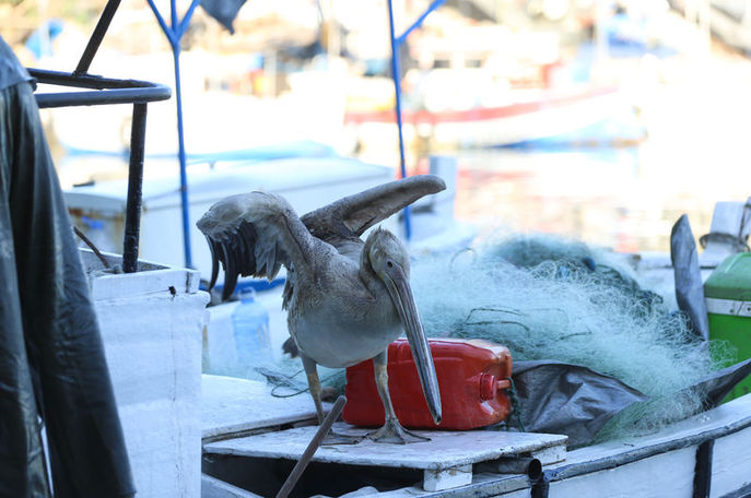 İstiklal Mahallesi'ndeki balıkçı barınağına 6 Şubat 2023'te meydana gelen depremlerin ardından konan pelikana, 50 yaşındaki balıkçı Tekin Uçar yardım eli uzattı.