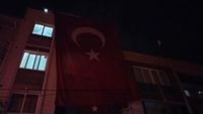 Şehidin annesinin evinin önüne ve çevreye Türk bayrakları asıldı. Eve gelen şehidin yakınları ve komşuları, anne Züleyha Mutlu'ya taziyede bulundu.