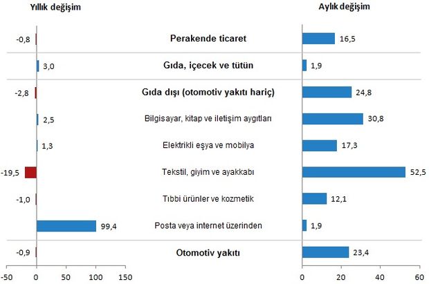 TÜİK, perakende satış endeksleri verilerini açıkladı. Haziran ayında bir önceki aya göre yüzde 16.5 artış kaydedilirken ciroda da yüzde 20.6 artış görüldü.