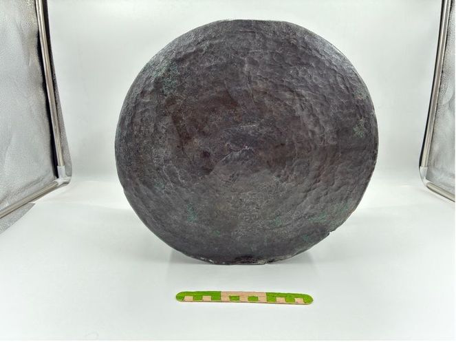 Açıklamada, bronz kabın iyi korunduğu konservasyon ve restorasyon çalışmaları sonucunda yüzeyinde yer alan çekiç izlerinin net şekilde gözlemlendiği vurgulandı.