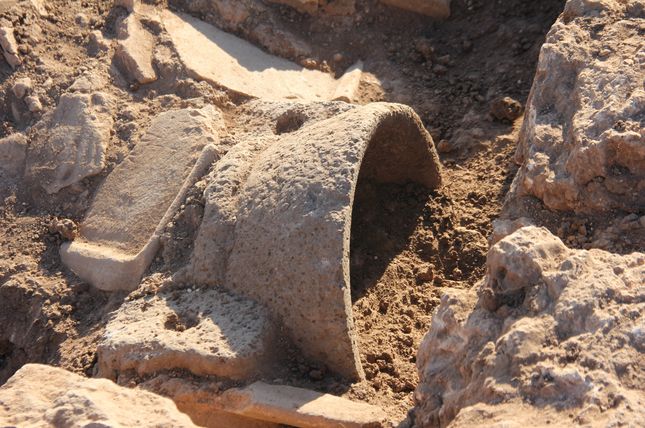 "Burada bir çökme söz konusu bu da bize deprem olasılığını gösteriyor. Bu yapının yaşam alanı olduğunu düşünüyoruz. Nekropol alandan hemen sonra yan tarafta yaşam alanları başlıyor sonraki dönemlerde mekan içleri duvarları olan basit yapılı mekanlar aynı zamanda kazı çalışmaları esnasında da sikke, metal obje bronz objeler bulduk bunlar da çivi, kapı aparatı gibi şeyler."