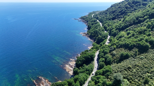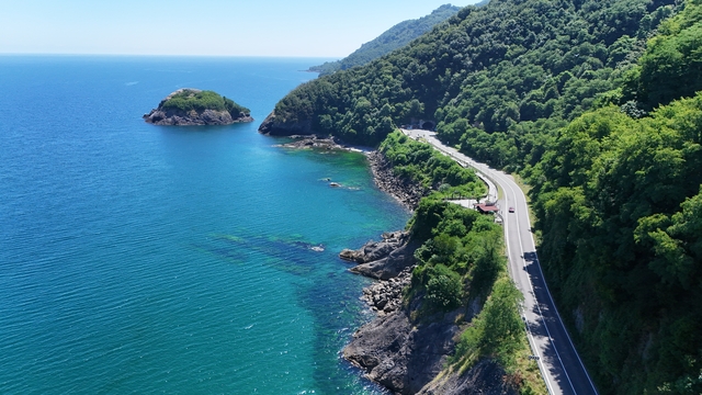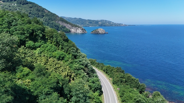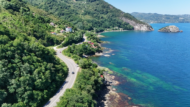 Ordu'da Hoynat ve Timsah adaları ile Yason Burnu'nun yer aldığı 43 kilometrelik güzergahı kullanan sürücü ile yolculara, yeşil ve mavinin hakim olduğu manzara eşlik ediyor