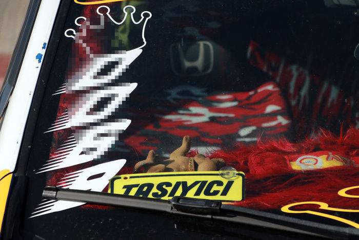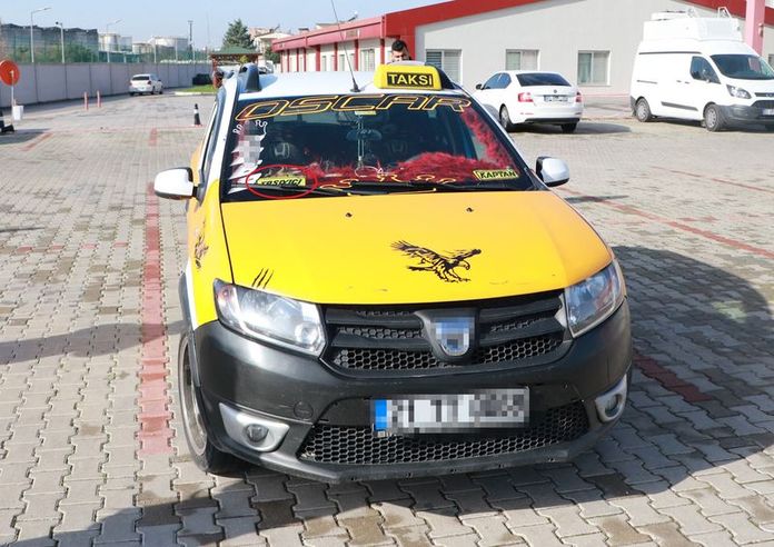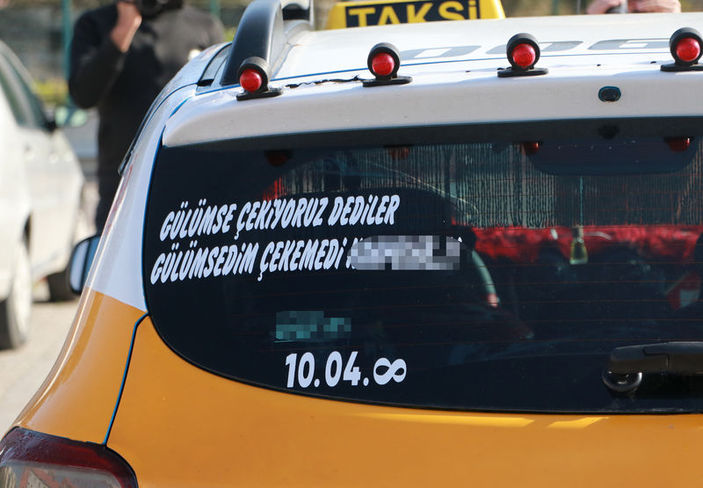 Öte yandan emniyet otoparkına çekilen taksinin bagaj kapağı, ön camı ve arka tamponundaki 'taşıyıcı', 'kaptan', 'gülümse çekiyorum dediler, gülümsedim çekemediler'" yazıları dikkat çekti.