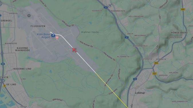 Kalkış öncesi gerekli kontrolleri yapılan uçak, Köln Havalimanı'ndan 5 saat sonra kalkış yaparak İngiltere'deki Manchester Havalimanı'na ulaştı.