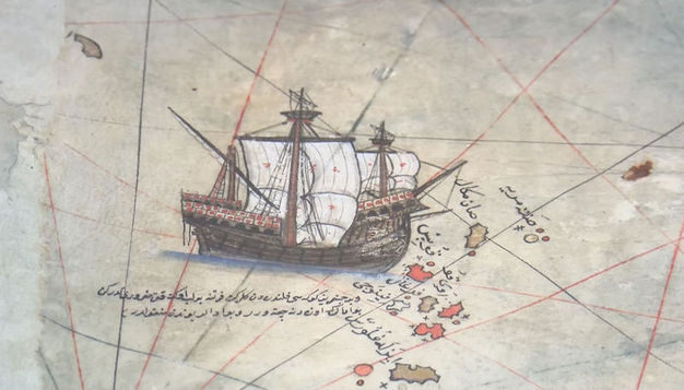 Piri Reis'in 1513 yıllında portolan stilinde hazırladığı bu haritanın ebadı 87 çarpı 63 santimetre.