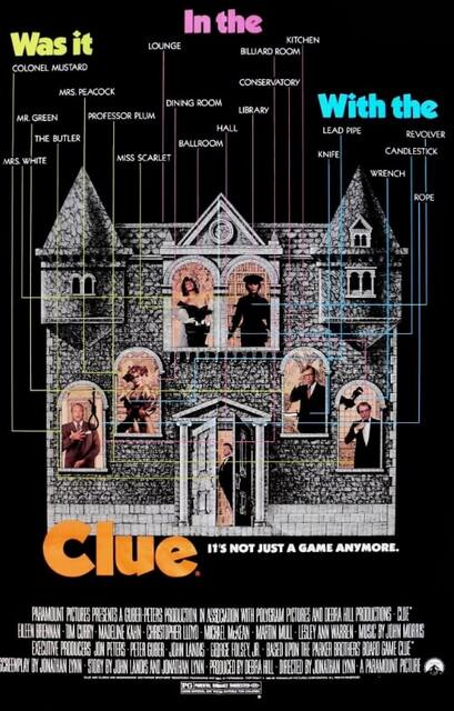 Kutu oyunundan uyarlanan Clue, tek mekânda geçen hızlı tempolu bir suç komedisi. Fırtınalı bir gece, karanlık bir malikane, birbirinden tuhaf konuklar ve her izleyicide farklı bir son hissi yaratan üç ayrı final… Yağmur sesi eşliğinde kafa dağıtmalık, temposu yüksek bir seçenek.