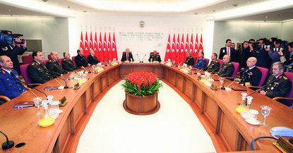 Önceki YAŞ'larda genelkurmay başkanlarıyla aynı hizada oturan Başbakan Erdoğan, dün ilk kez tek başına oturdu; sağındaki sıranın ilk başında ise Genelkurmay Başkan Vekili Org. Necdet Özel yer aldı.