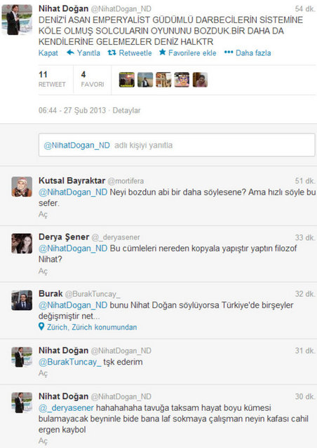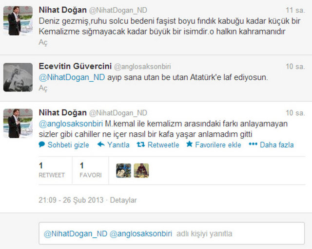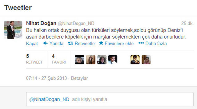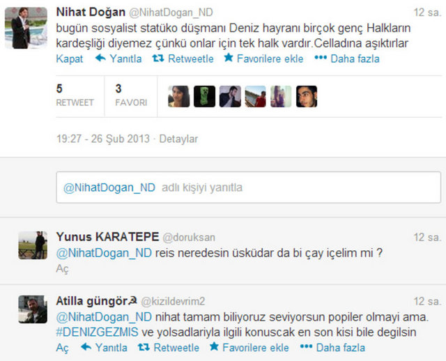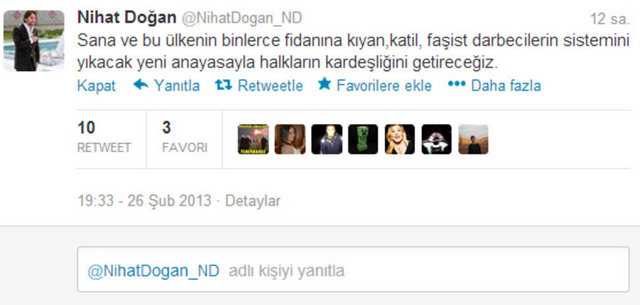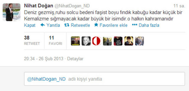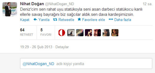 Doğan, sosyal paylaşım sitesi Twitter'daki hesabında, "Venezuella'ya gidiyorum Chavez'in cenazesine. Siz hala Twitter'da anın bakalım. Gerçek devrimci, dostunun yanında olur" dedi. Doğan ayrıca bir fotoğraf paylaşarak, "Che Guevara ve Fidel'in ülkesi Küba ziyaretimden bir anım. Siz hala Twitter'da devrimcilik oynayın. Ne diyorsak o" ifadelerini kullandı.