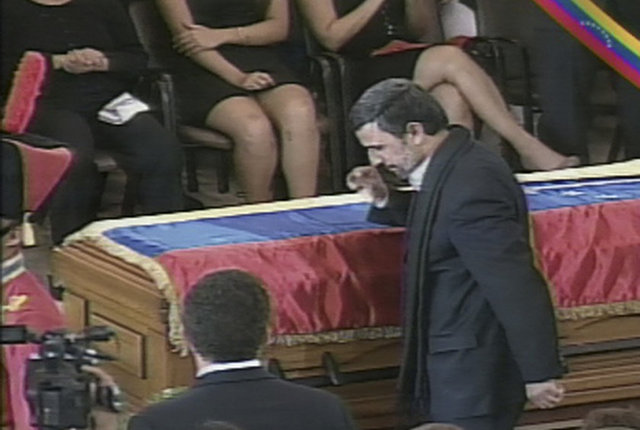 İran Cumhurbaşkanı Mahmud Ahmedinejad'ın, Chavez'in cenaze törenindeki davranışları İran'da krize neden oldu. Ahmedinejad'ın, cenaze töreni sırasında Chavez'in 78 yaşındaki annesi Elena Frias'a sarılması muhafazakar çevrelerde tepkiyle karşılanırken, İran'lı lider günah işlemekle suçlandı.