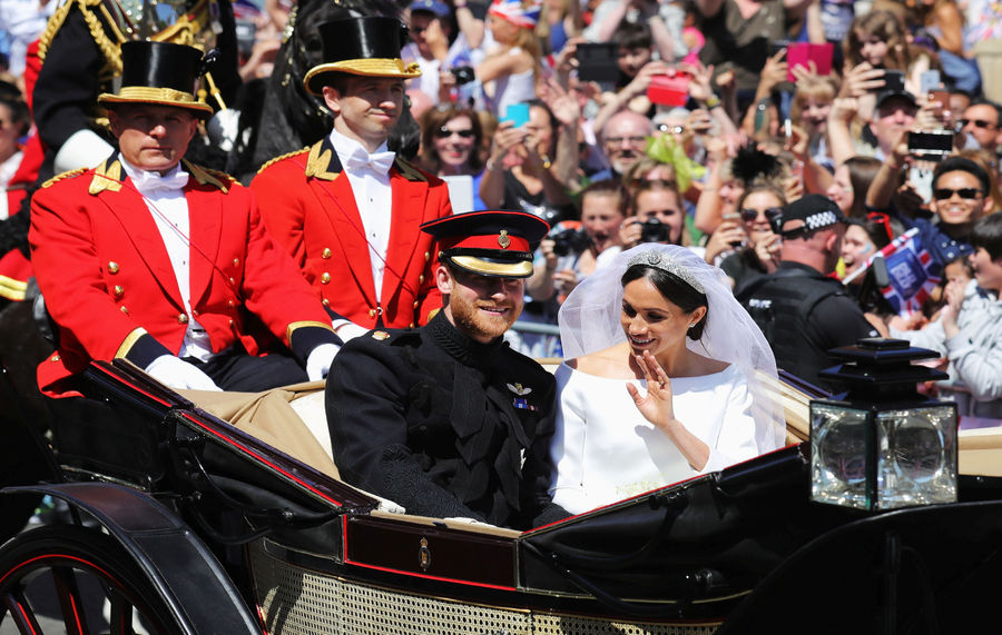 Kraliyet çifti düğün törenin ardından, resmi ve törensel devlet etkinliklerinde kullanılan "Ascot Landau" adlı atlı arabayla kentin caddelerinden geçip halkı selamladı.