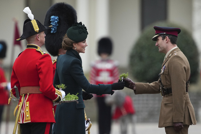 Aziz Patrik Günü, İrlanda'nın koruyucu azizlerinden biri olan Aziz Patrik'in adına kutlanan bir festival. Prenses Kate, eşi Prens William'dan devraldığı bir rol olan alayın fahri albayı ünvanıyla, İrlanda Muhafızları'nın Aziz Patrick Günü geçit törenine seyretti.