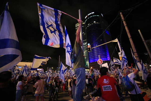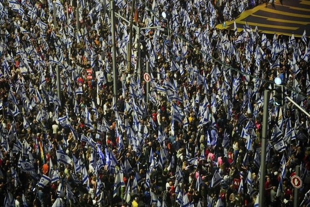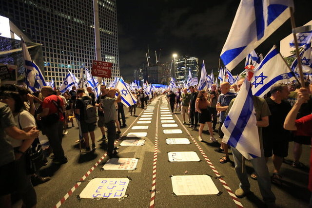 İsrail'de binlerce vatandaş, Başbakan Binyamin Netanyahu öncülüğündeki koalisyon hükümetinin, yargının yetkilerini sınırlayan düzenleme ve sağ politikalarına karşı haftalardır düzenledikleri protesto gösterilerini sürdürdü.