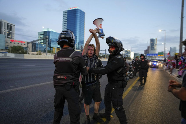 İsrail polisinin Tel Aviv'de provokasyon suçlamasıyla 2 göstericiyi gözaltına aldığı aktarılan haberde, muhalefet lideri eski Başbakan Yair Lapid'in de Tel Aviv'de gösteriye katıldığı ifade edildi.