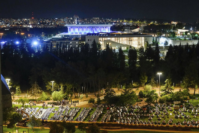 Öte yandan, on binlerce gösterici, hükümetin yargı düzenlemesine karşı salı günü Tel Aviv'den başlattıkları yürüyüşte akşam saatlerinde Batı Kudüs'e ulaştı. Göstericiler, İsrail Meclisi yakınlarındaki parkta toplanarak çadır kurdu.