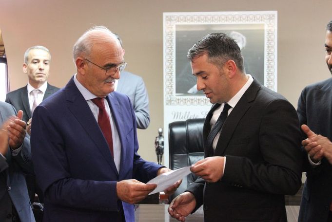 Çetin, başkanlık makamına geçerek burada AK Parti Yerel Yönetimler Başkan Yardımcısı ve Samsun Milletvekili Yusuf Ziya Yılmaz'dan mazbatasını teslim aldı.