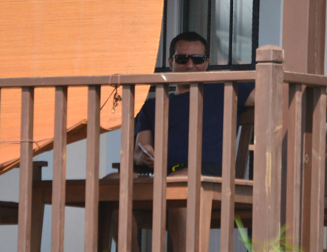 Daha sonra gazetecileri fark eden El Roman sevgilisini saklamaya çalışırken, şarkıcı ise tam aksine havuza girdi.