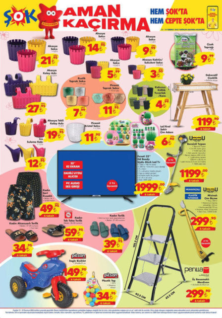 ŞOK 19 Temmuz Cuma aktüel listesi yayınlandı. Beko 9 kg çamaşır makinesi, ahşap kollu plaj sandalyesi, termos çanta, çiçek toprağı, dekoratif çiçeklik, Fenoti HD Ready Uydu Alıcılı LED TV, Viomi V3 robot süpürge ve daha birçok ürün 16 - 19 Temmuz indirimli ürünler raflardaki yerini aldı. İşte ŞOK aktüel haftanın fırsatları tam liste...