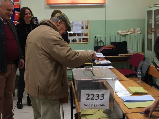 Ünlü iş adamı Rahmi Koç, Mahalli İdareler Seçimleri için oyunu Üsküdar'da bulunan Kandilli İlkokulu'nda kullandı