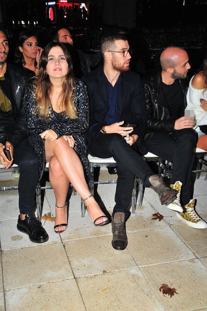 Ünlü ikili açık alanda gerçekşen defilede yağan şiddetli yağmura rağmen yakın arkadaşları Raissa & Vanessa kardeşlerin transparan ağırlıklı marjinal defilesini sonuna kadar takip etti.