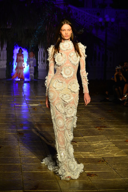 69 ayrı parçadan oluşan kolleksiyon dagredeler ve tüllerden oluşurken transparan kıyafetlerde büyük dikkat çekti.