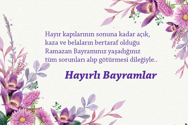 Ramazan Bayramınızı en içten dileklerimle kutlar, sağlık, mutluluk ve sevgi dolu günler dilerim. Bayramınız mübarek olsun, sevdiklerinizle birlikte nice bayramlar geçirmeniz dileğiyle.