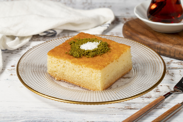 Üzerine irmik, un, kabartma tozu ve vanilya eklenerek devam edilir. Kıvam alan hamuru yağladığınız kek kalıbına dökülür. 180 derecede kızarıncaya kadar pişirilir. Fırından çıkınca hemen; soğuyan şerbet üzerine dökülür. Üzerine kaymak, dondurma ya da Hindistan cevizi ile süslenebilir.