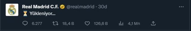 Real Madrid'in ilk tweeti Türkçe "Yükleniyor..." oldu.