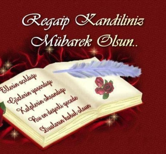Ya Rabbi! Sesimizi duyansın, hallerimiz bilensin. Açtık gönlümüzü sana, Sen Sen imdat eyle, Sen affeyle, sen yollarımızı hayır eyle. Melekler daima duacınız olsun. Yüreğiniz ferah, imanının bol olsun. Sevgili Peygamberimiz Şefaatçimiz olsun. Regaip Kandilimiz Mübarek olsun!