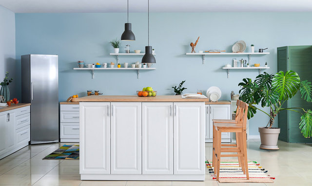 Mutfak ve yemek odalarında mavi ve tonlarını tercih etmek mekânın daha sakin ve dengeli olmasına yardım eder. Böylece burada yiyeceğiniz yemeklerde de daha sağlıklı tercihler yaparsınız. Uzmanlar özellikle, koyu mavi ve lacivert yemek tabaklarının yine bu tonlarda kurulan sofraların iştahı azalttığının altını çizmektedirler.