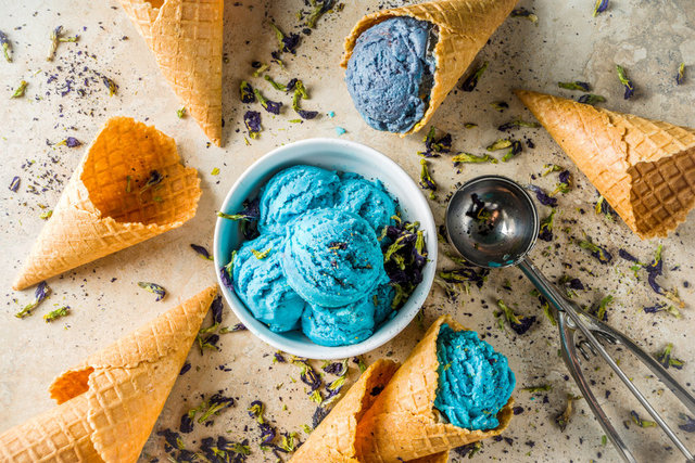 Mavi gıdaların tarih boyunca insan psikolojisinde zehirli veya bozuk olarak kodlanmış̧ olması mavi renkli yiyeceklerin daha az tercih edilmesine sebep olmuştur. Bu sebeple yapılan araştırmalarda mavi rengin en az iştah açan renk olduğu ifade edilir.