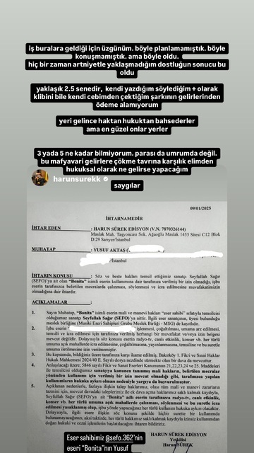 Sefo, sosyal medya hesabından yaptığı açıklamada, "2,5 senedir Bonita şarkısının gelirlerinden tek bir ödeme almadım. Bu mafyavari 'gelirlere çökme' tavrına karşı hukuki her şeyi yapacağım. İşlerin bu noktaya gelmesinden dolayı üzgünüm" ifadelerini kullandı.