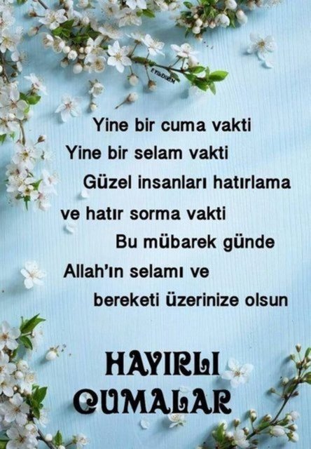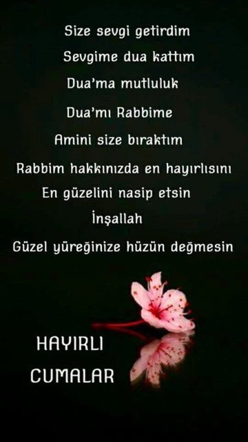 Tüm dualarınızın kabul olduğu, hayırlı bir Cuma geçirmeniz dileğiyle.