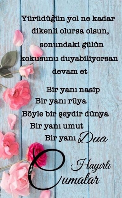 "Cuma, kalplerimizi temizlediğimiz, sevgiyi ve merhameti paylaştığımız bir gün. Rabbimizin huzurunda duamızı iletelim, sevdiklerimizi hatırlayalım. Hayırlı Cumalar