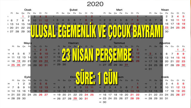 (Hafta sonu tatilleri ile birlikte 9 gün)