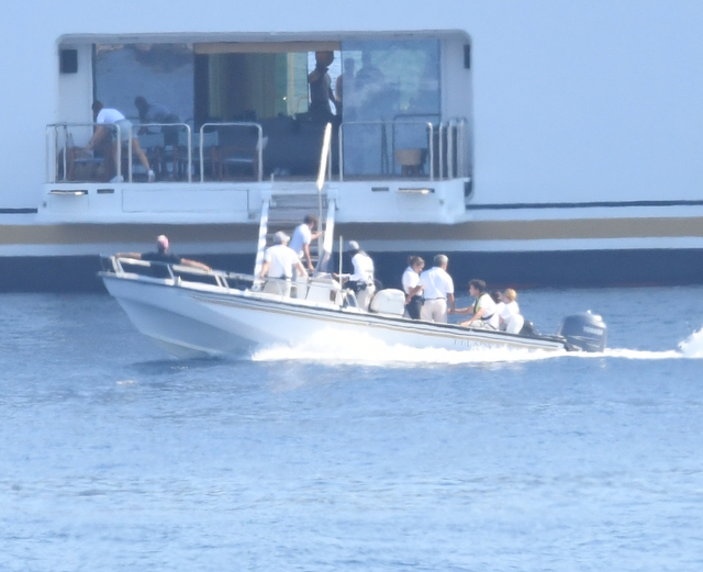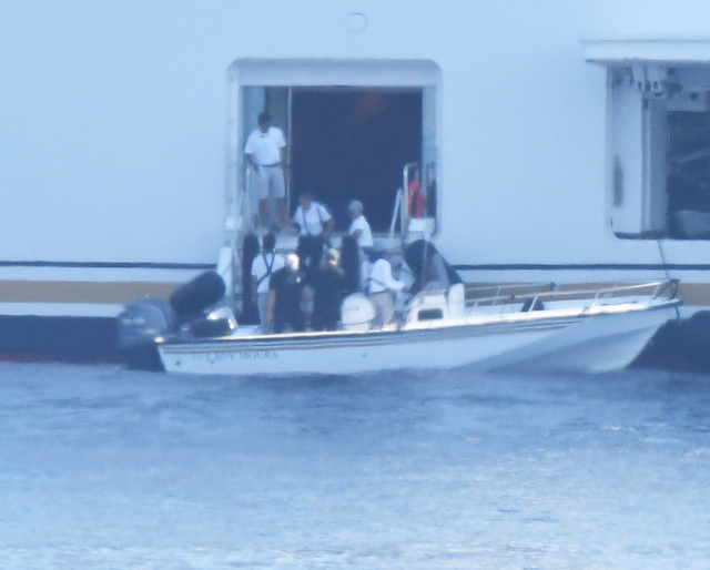 Ricardo Salinas Pliego'nun yatından kalabalık bir grup, akşam saatlerinde tekneden inip bit bot aracılığıyla karaya geçti.
